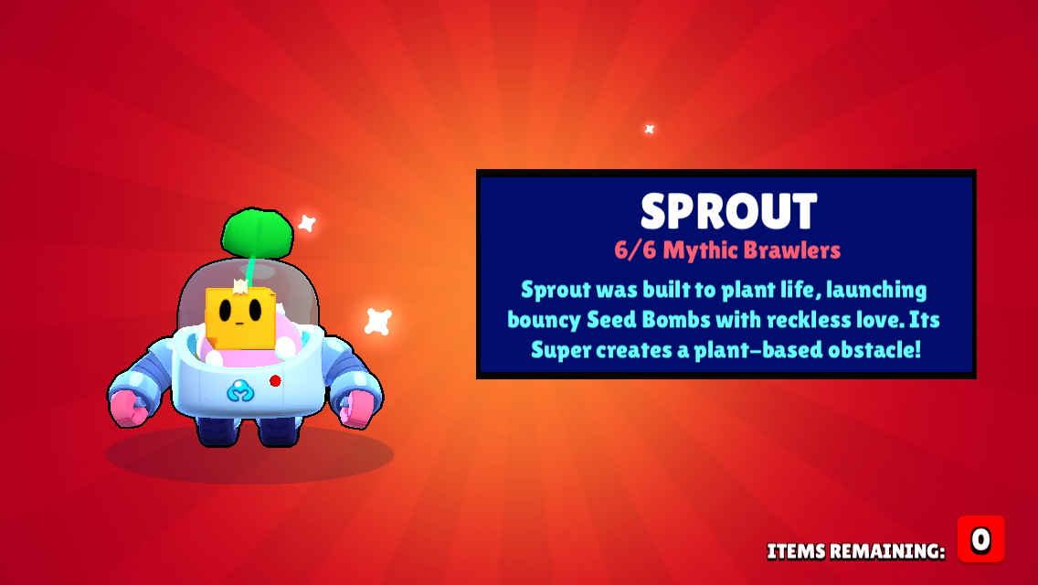 Nature. i like trees. brawlers with invulnerability bubbles can now destroy the walls generated by hedge. And what about the other brawlers? Content must be related to strategic aspect of brawl stars all posts should directly contain strategic brawl its viable in gem and bounty as agro for some maps. Brawl stars funny moments, fails, win. If the ball makes contact with enemies, or after a set period of time, it explodes to deal area. Can you guess the inspiration used for sprout? We're taking a look at all of the leaked information we know about them, with a look at the leaks, release date, attacks, gameplay, and what skins will be available for them. Attack, super and gadget description. Be the last one standing! Sprout, if the super is less broken, its probably gonna be. Sprout's garden mulcher healing was decreased to 2000 (from 3000). Sprout was built to plant life, launching bouncy seed bombs with reckless love. How to submit your videos 1) upload your video to youtube or.